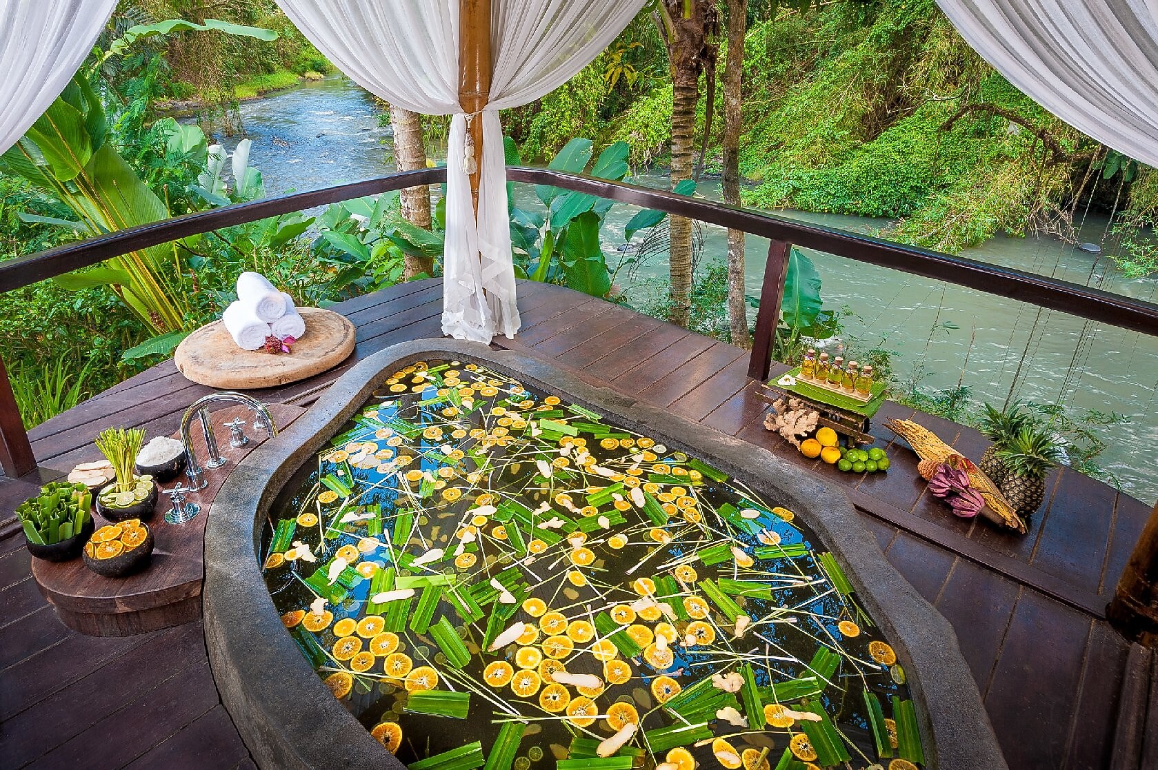 Rooms open to furnished balconies or patios. Welcome to fivelements retreat bali. Pura dalem agung padangtegal is the closest landmark to fivelements retreat bali. The lush tropical grounds include croton plants, colorful and fragrant frangipani and orchid flowers, palm trees.
