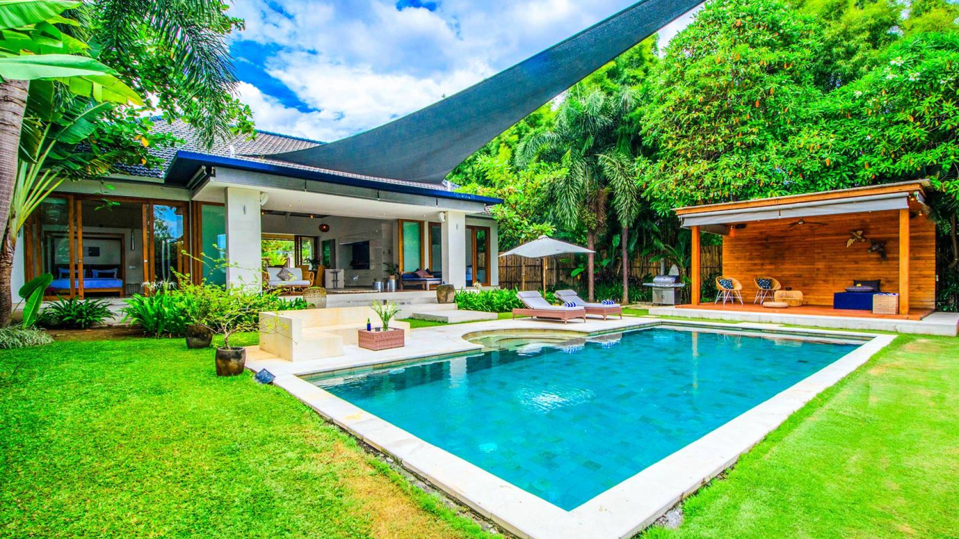 Luxury and private modern 3 bedroom villa in the residential area of umalas , fully equipped with all the essentials. The villa ideally located in the umalas area with easy access to all favorite spots around canggu and seminyak. Within a series of pavilions curved around a large swimming.