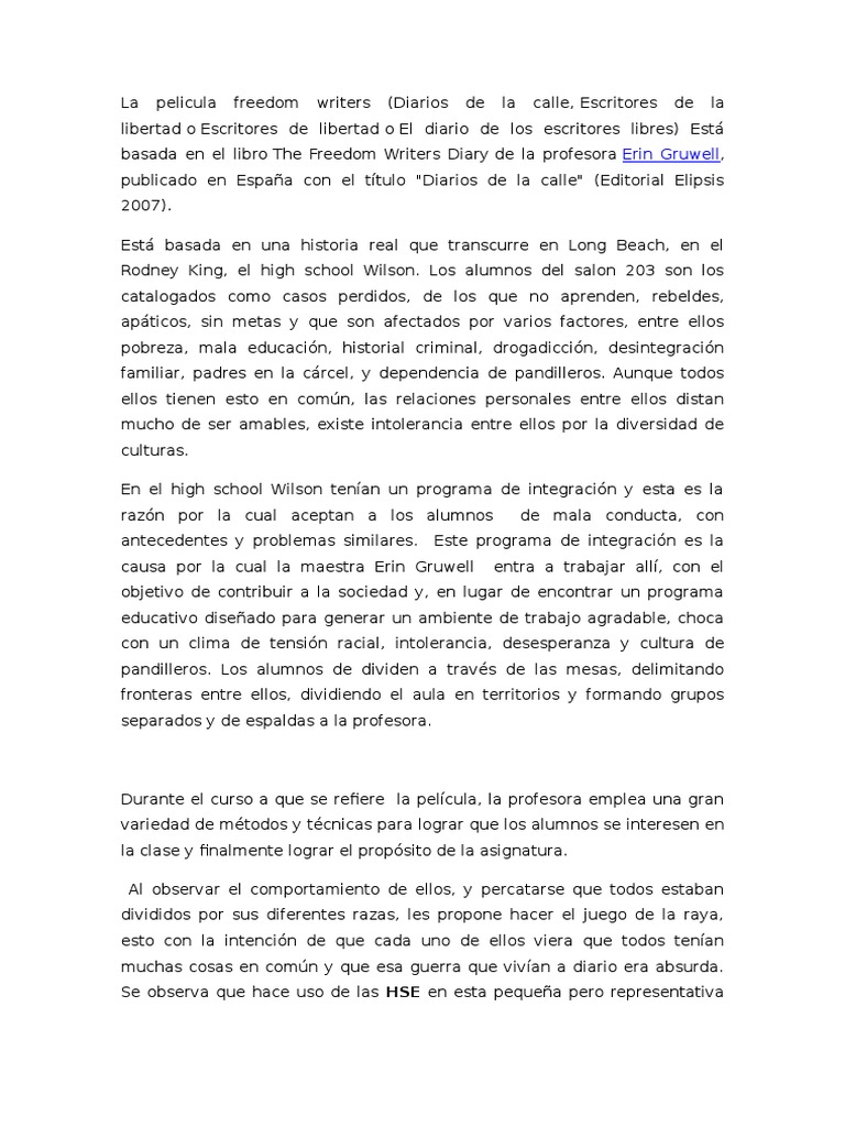 La joven idealista erin gruwell empieza a sus 23 años como profesora en el violento colegio wilson.